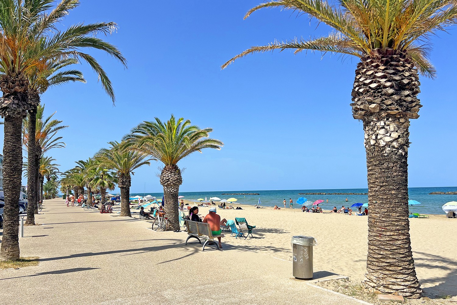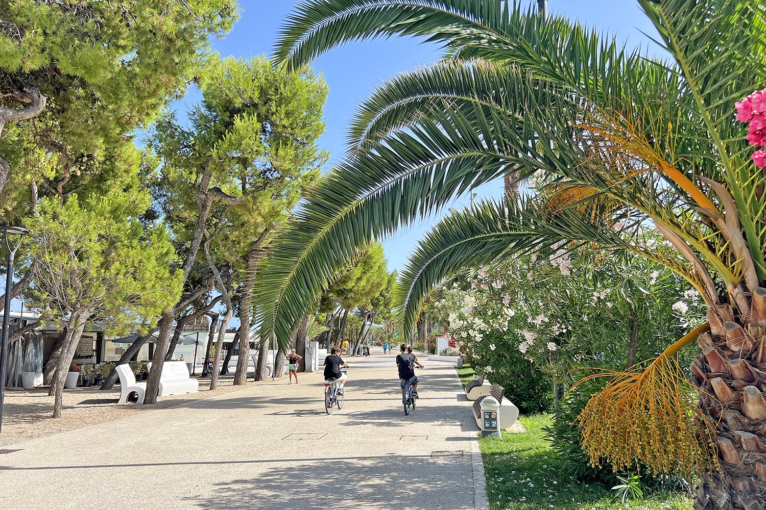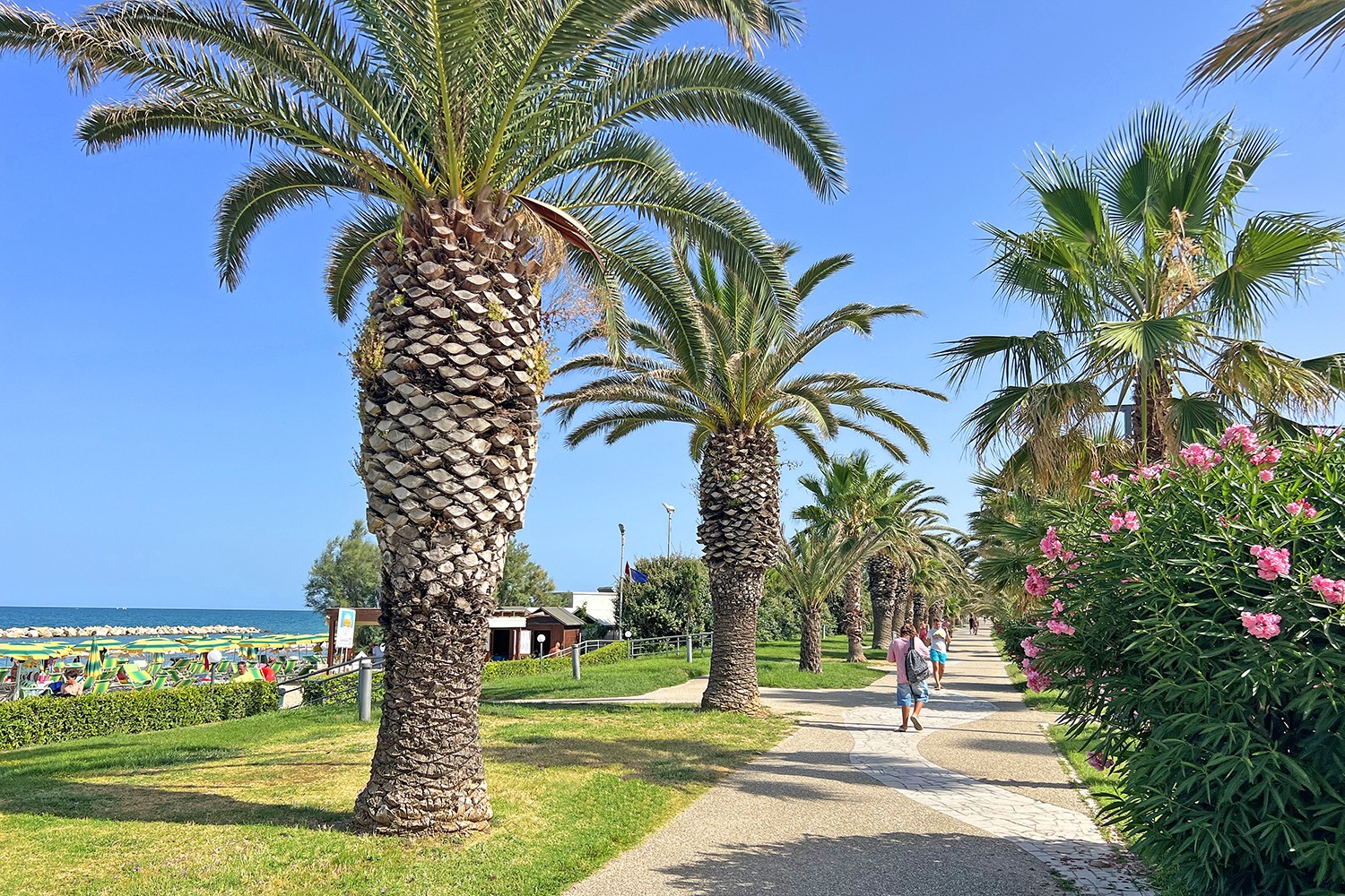 Langs de kust ligt het Lungomare, het gezellige centrum van de stad aan zee, en de prachtige palmenboulevard met tal van chalets en restaurants. Hier kun je genieten van verse visgerechten met uitzicht op zee, een gelato bij een van de ijssalons of gewoon ontspannen op het strand. Het is de ideale plek voor een middag of avond aan zee, met een levendige en vriendelijke sfeer.