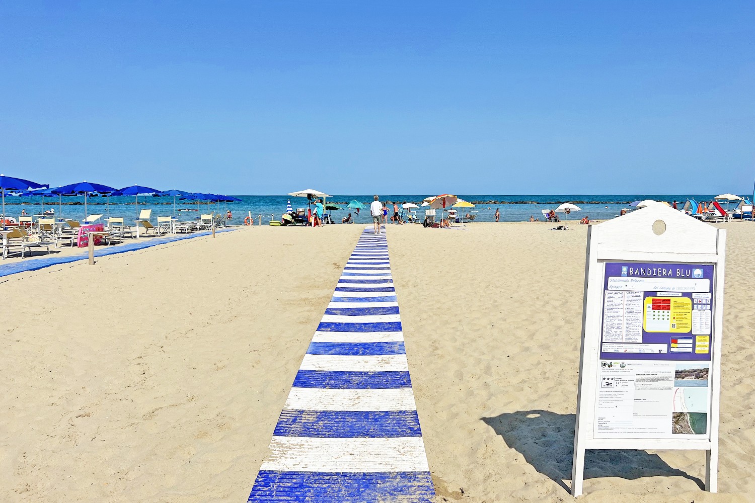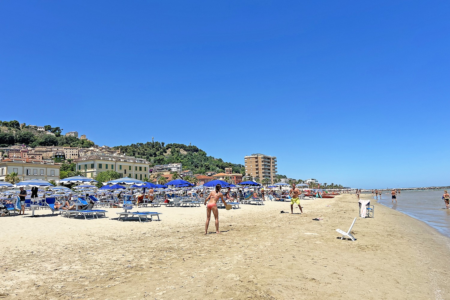 Het prachtige strand van Grottammare, waar het lang ondiep blijft, dus ideaal om lekker in het water te dobberen.