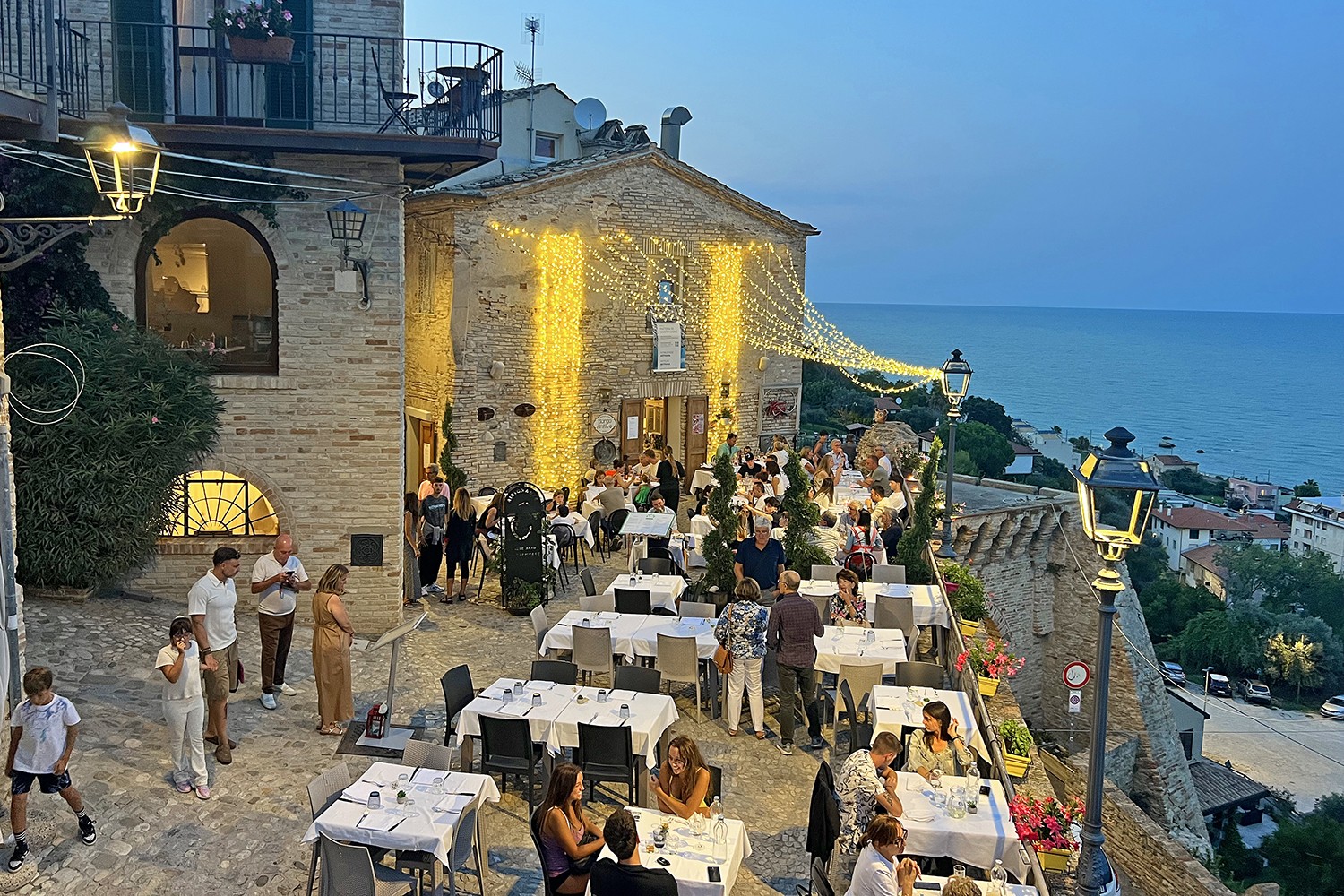 Nog een ander beroemd terrasje in Grottammare alta, met prachtig uitzicht op de zee.
