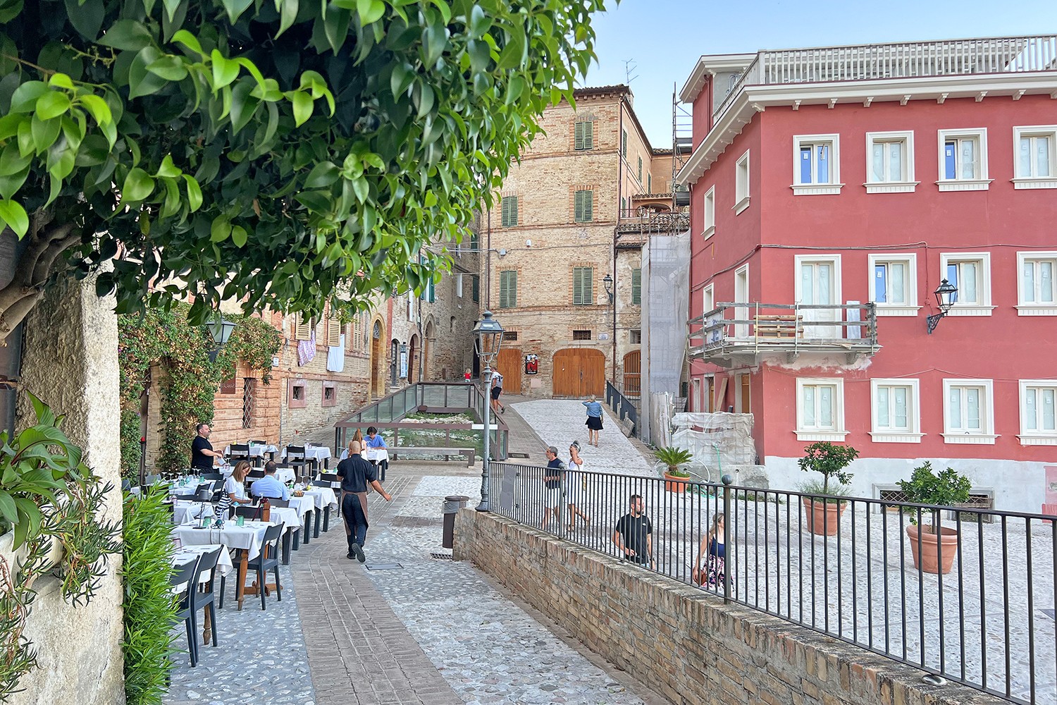 Het centrale pleintje in Grottammare waar je heerlijk wat kunt drinken of eten.