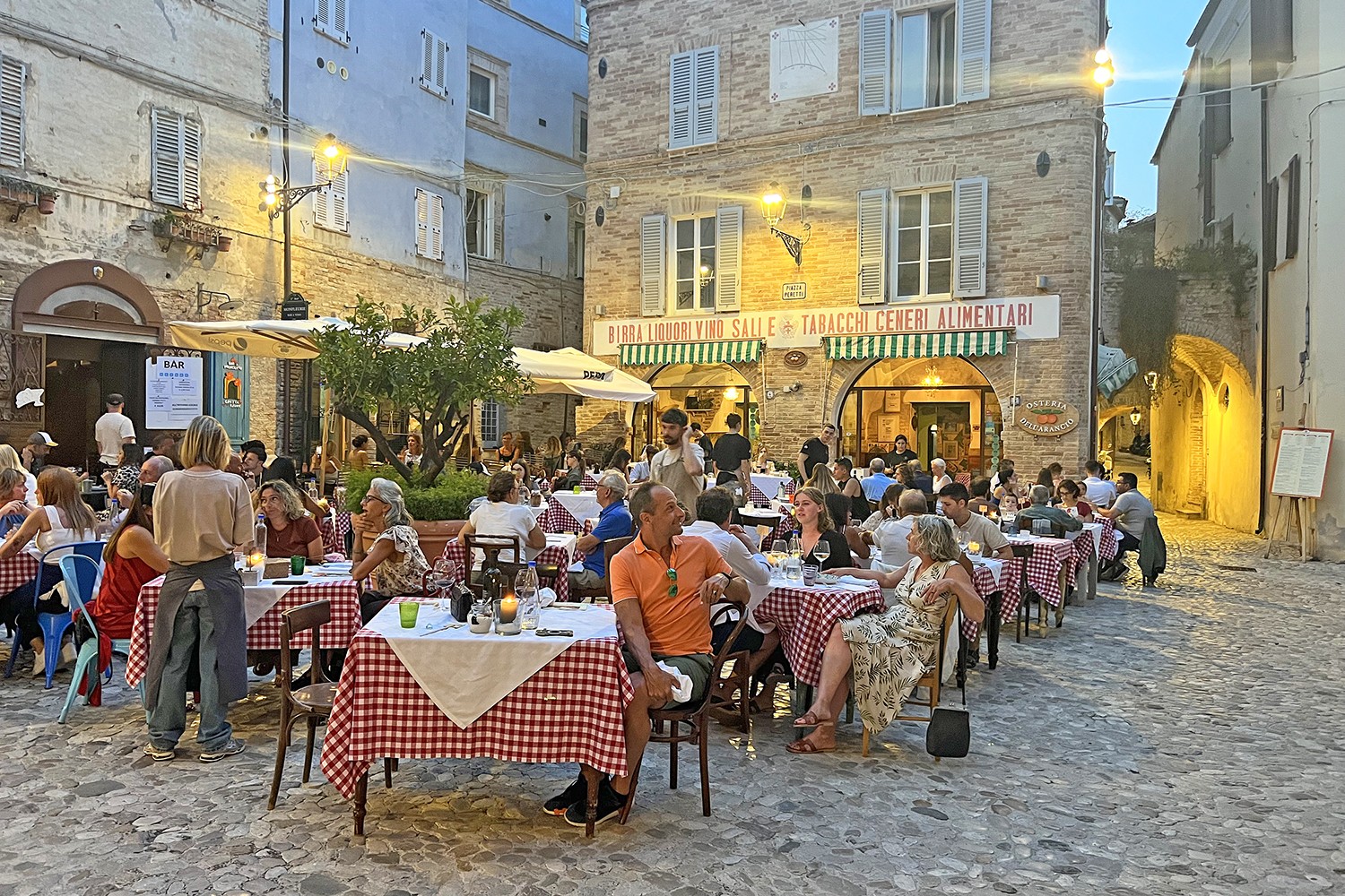 De sfeervolle borgo alto van Grottammare met diverse restaurants.