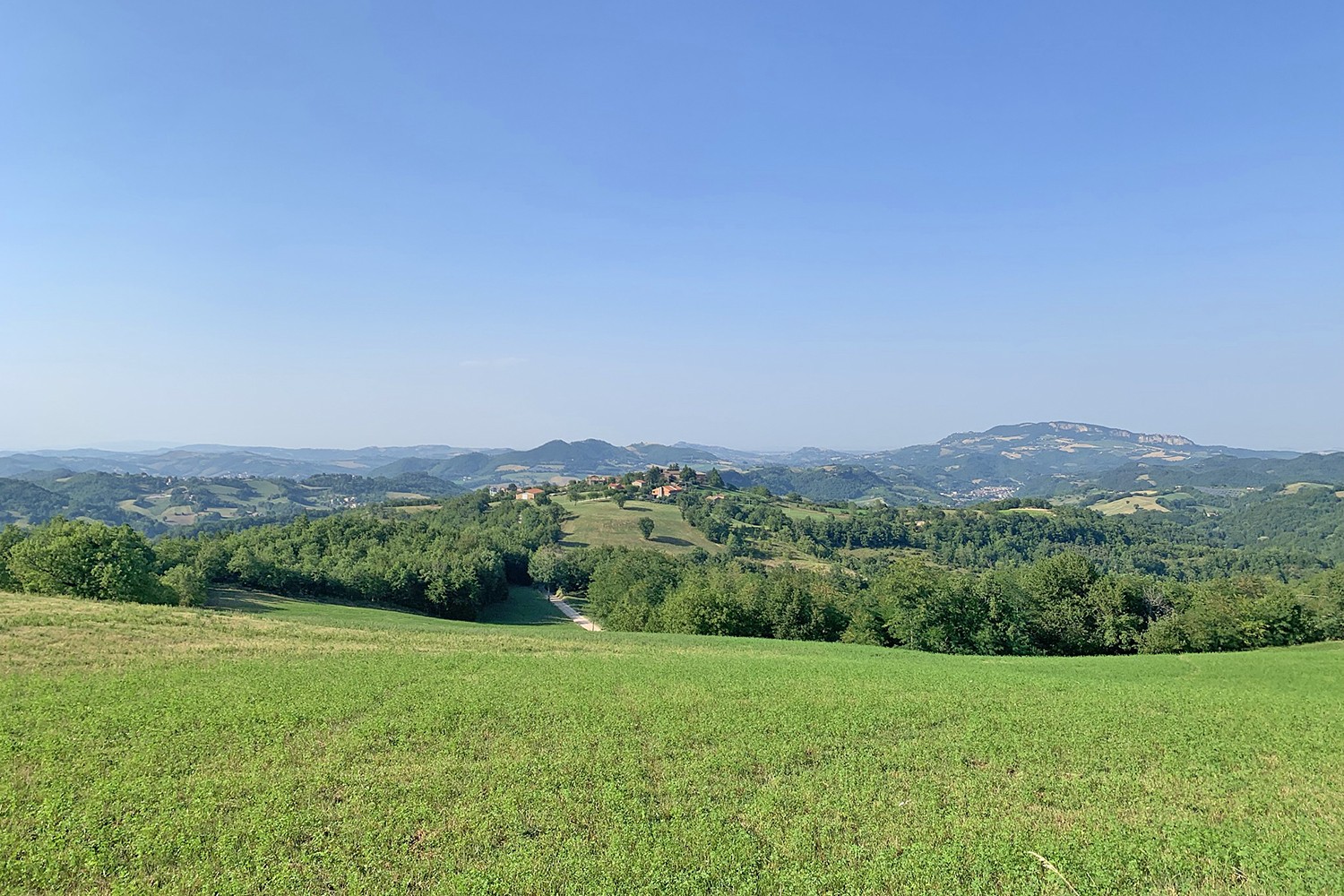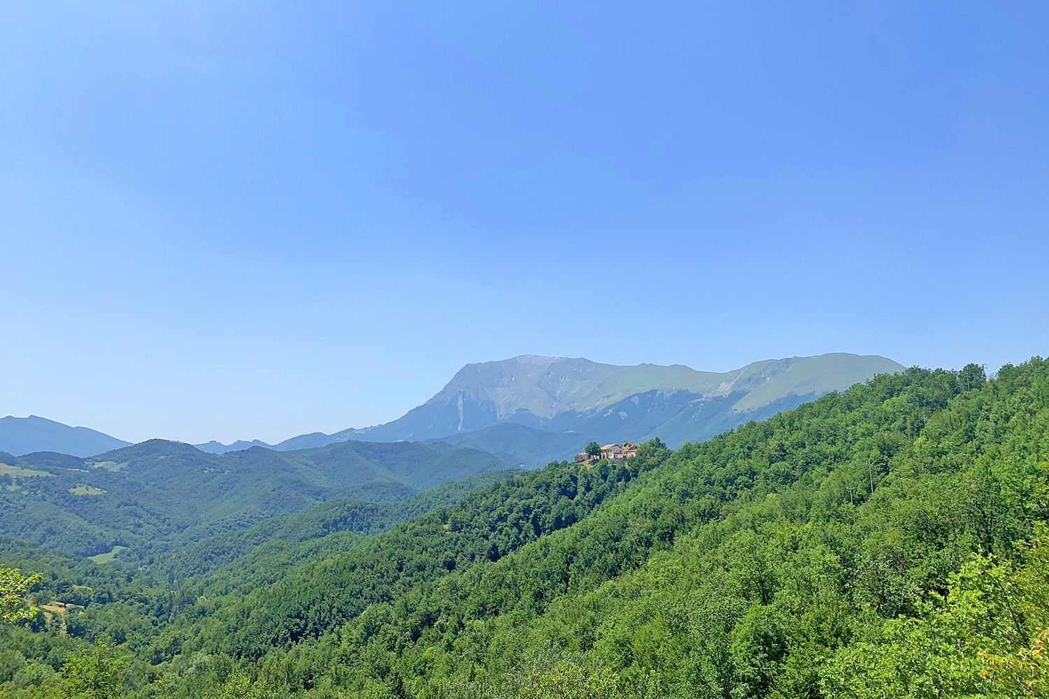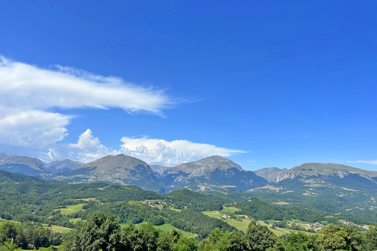 Uitzicht over de heuvels op de Monte Sibillini.