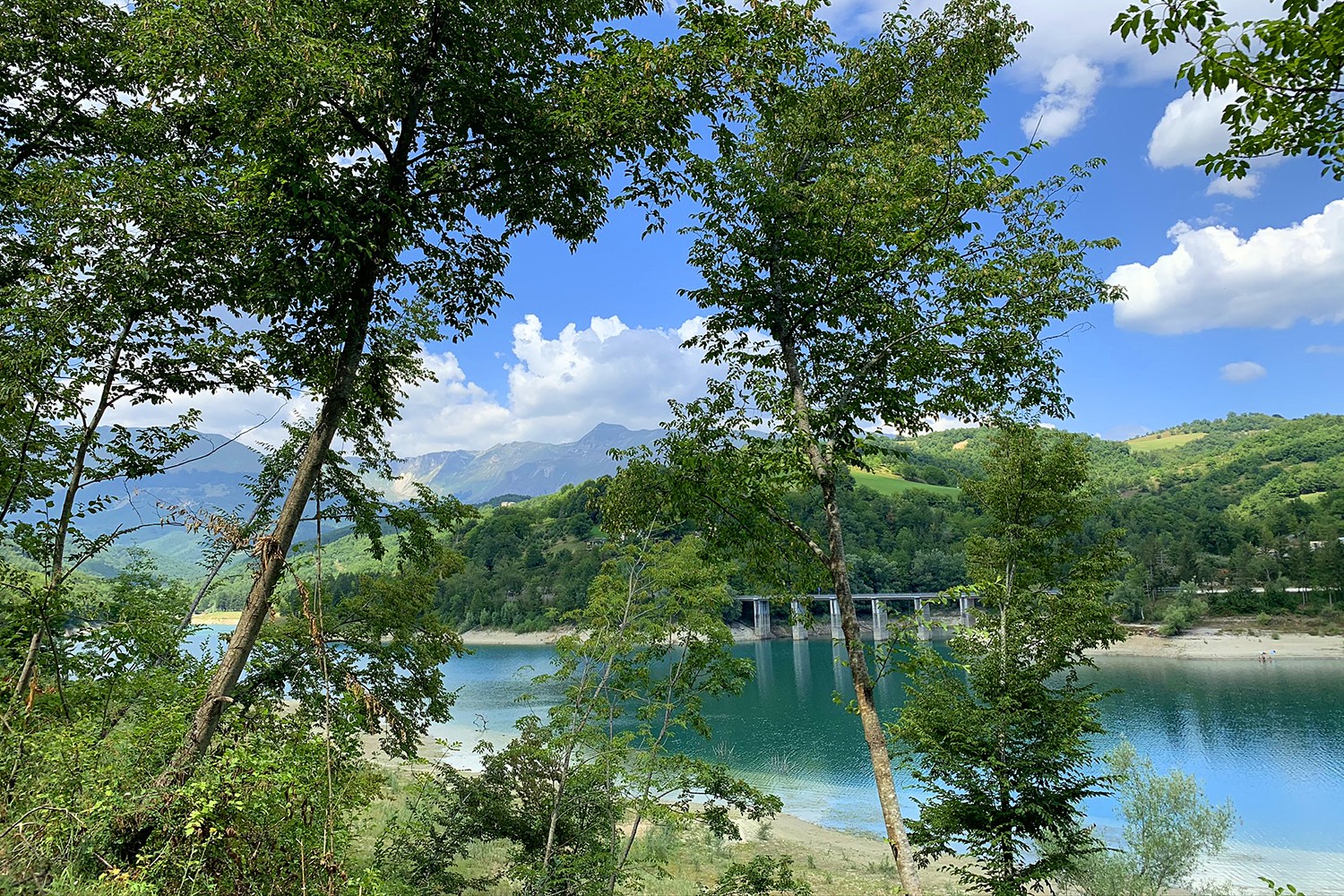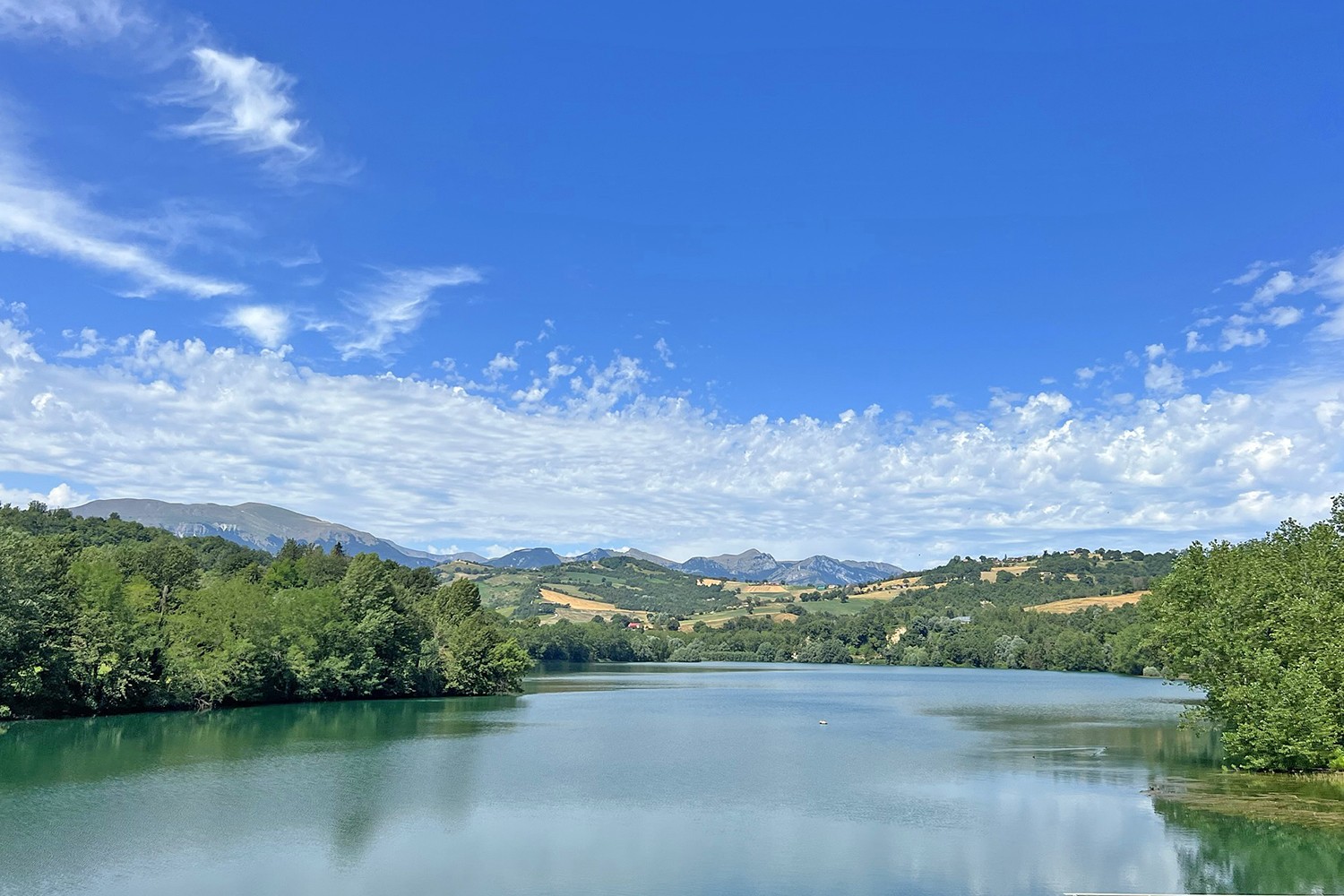 Een prachtig stuwmeer verscholen tussen de heuvels en bossen.