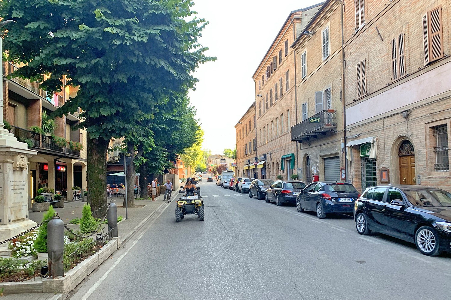 De hoofdstraat van Sarnano met barretjes en winkeltjes.