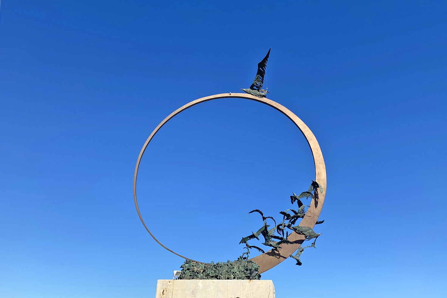 Een kunstwerk in brons dat symbool staat voor San Benedetto del Tronto.